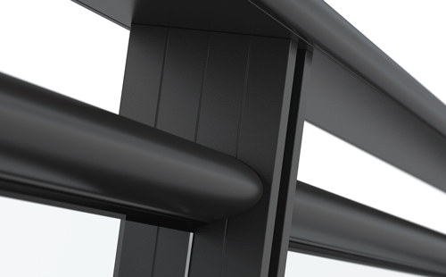 Υψηλή αισθητική και λιτές γραμμές συνθέτουν ένα μοντέρνο σύνολο. Προφίλ αλουμινίου που μπορεί να συνδυαστεί με διάφορα υλικά, όπως διάτρητη λαμαρίνα και πολυκαρμπονικά φύλλα.