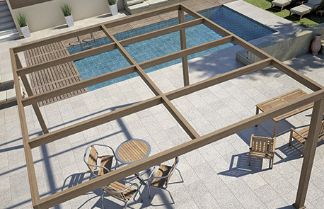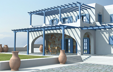 Η παραδοσιακή πέργκολα μπορεί να εφαρμοσθεί σε κατασκευές κτιρίων προσδίδοντας την αίσθηση του κλασικού.