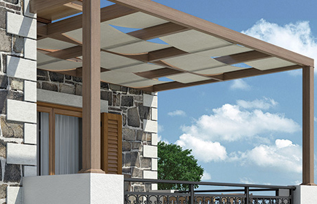 Ο συνδυασμός της μοντέρνας πέργκολας με πανί προσφέρει επιπλέον σκίαση σε πολλές εφαρμογές όπως σε μπαλκόνια, κήπους κ.ά.
